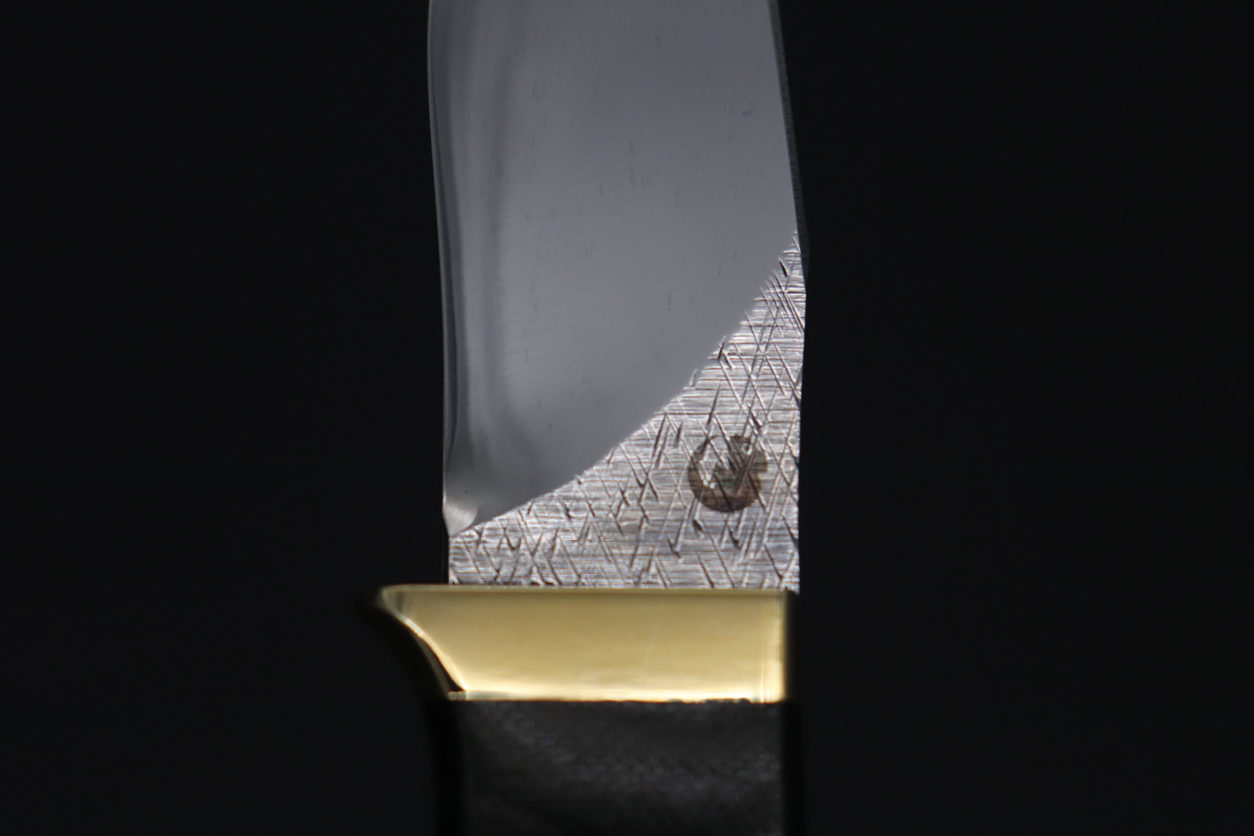 To add visual interest and dimension to the overall form, Mr. Takahashi applied a hammered texture near the Hilt area. This Tsuchime Hammered finish creates subtle depth while complementing the knife's clean lines.