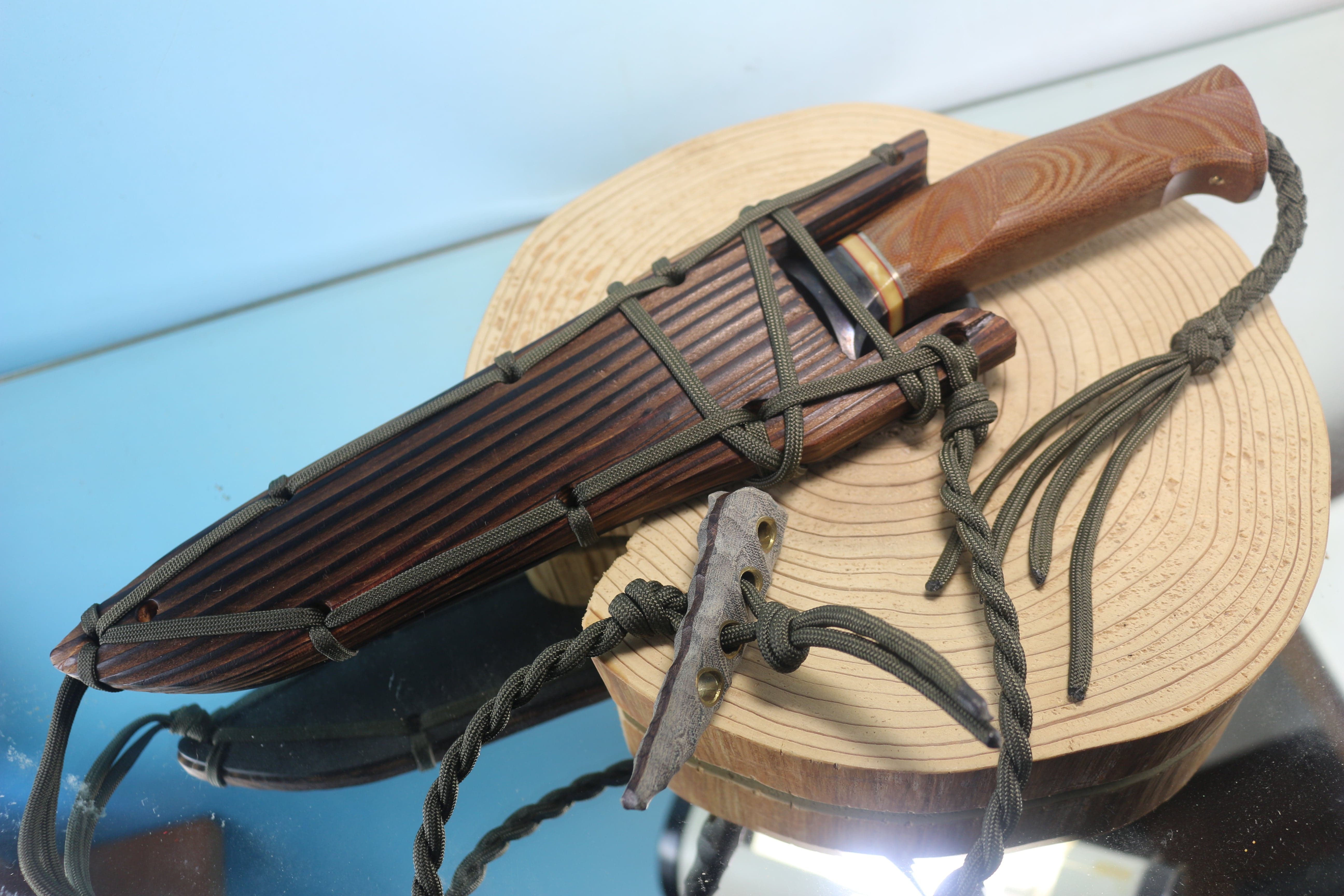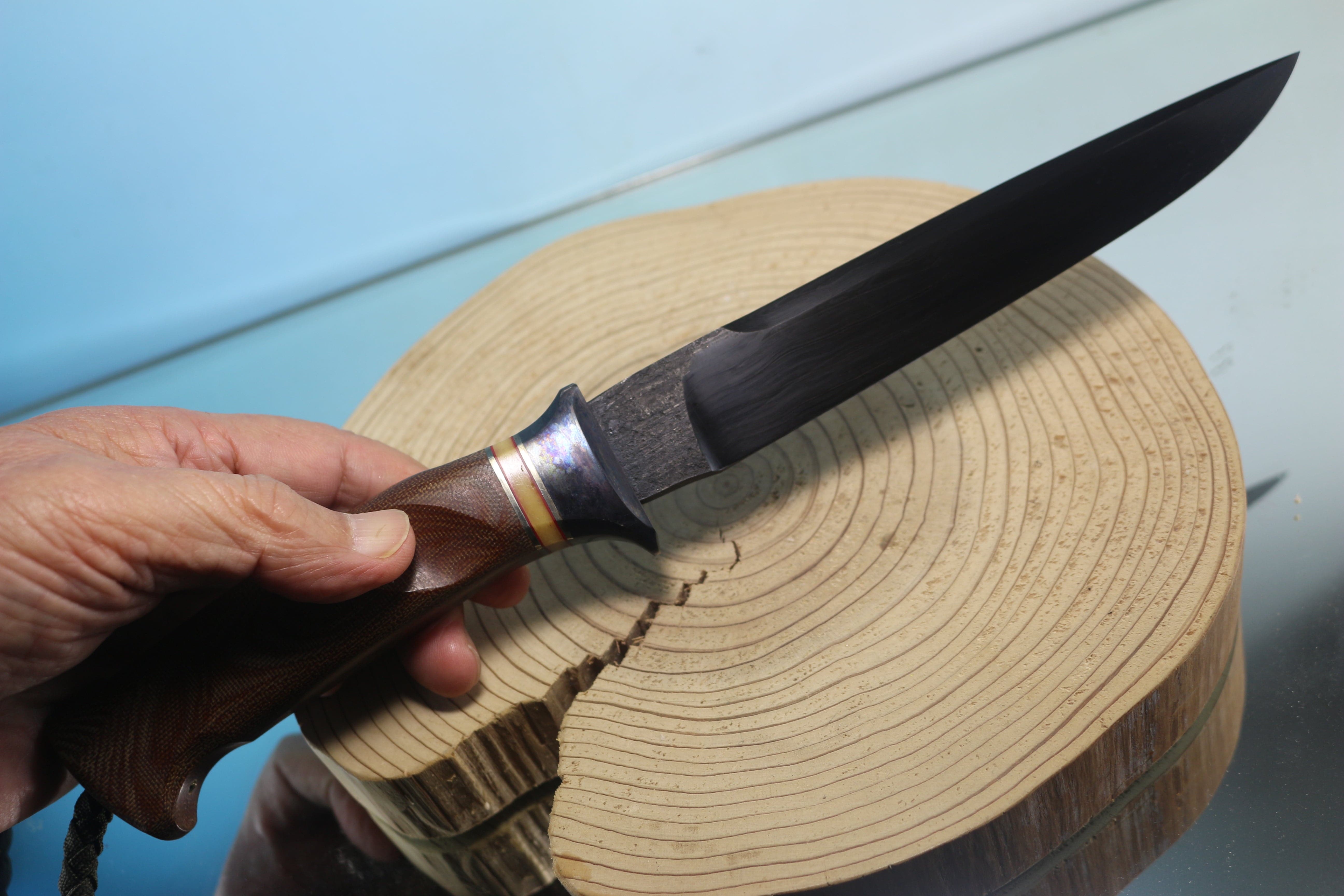 Handle Material: Hand contoured Brown Canvas Micarta with Blackened Metal Hilt