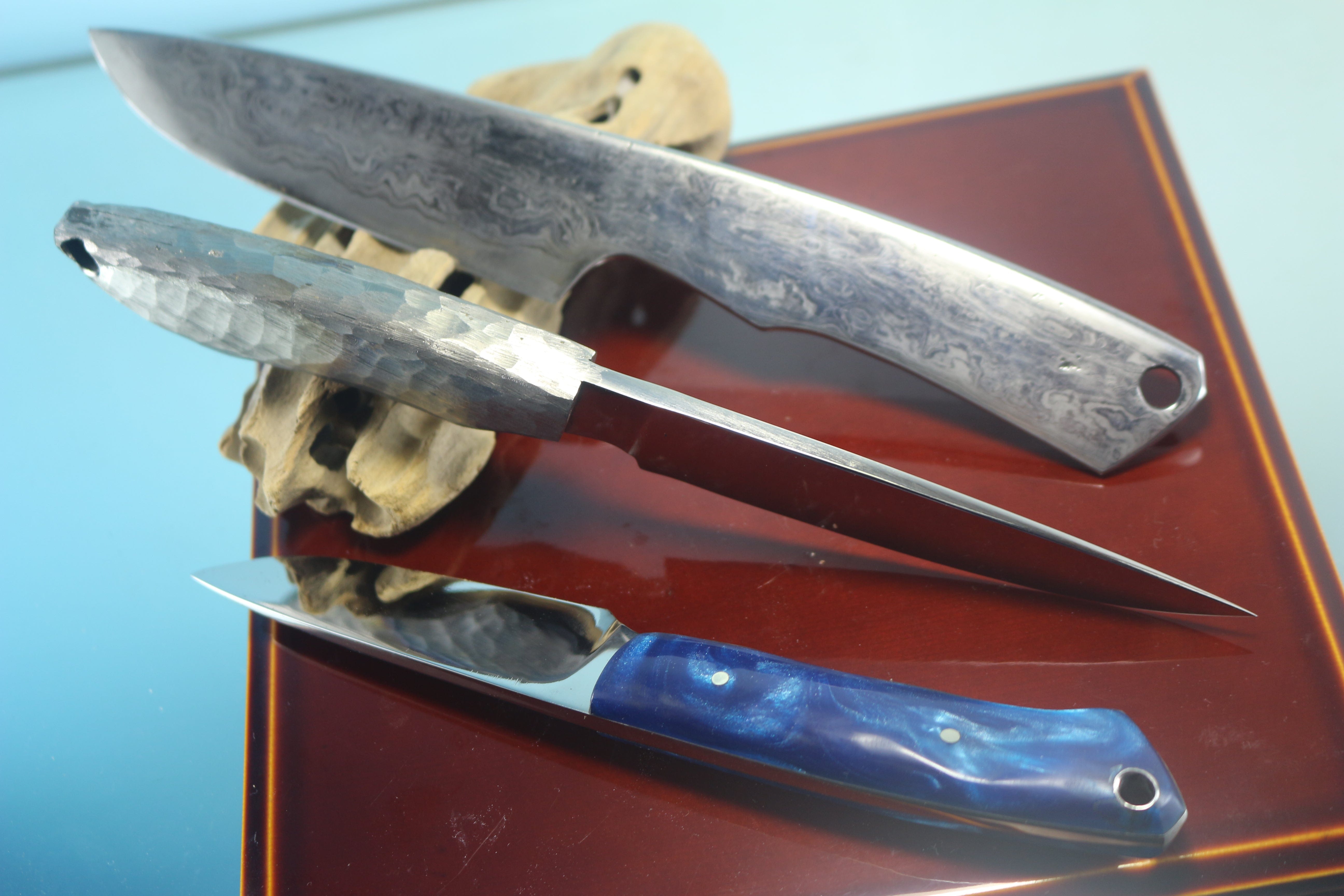 IKUMI OKANO IO-100 Hammer Forged Knives, H2 and Carbon Damascus Blades