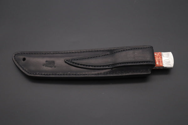 This exquisite Custom Knife represents the culmination of Koji Hara’s 76 years of life and craftsmanship — a one-of-a-kind creation that fuses elegance, tradition, and innovation. As one of Japan’s most revered custom knifemakers, Koji Hara brings his signature "Air Step" technique to this refined piece, which evokes both Japanese cultural motifs and modern slimline form.