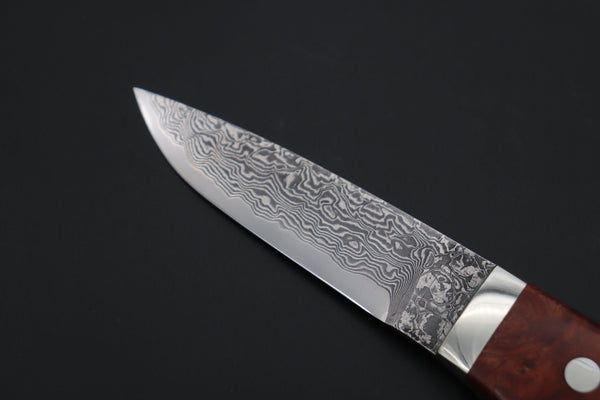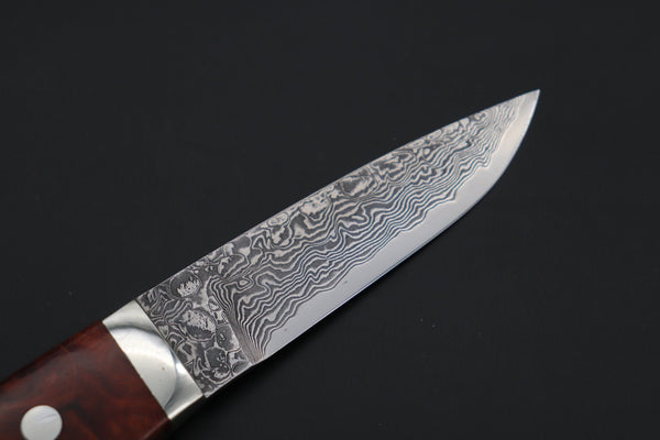 Mr. Itou IT-960 Drop Point Utility Hunter, 3.7" R-2 Damascus Blade, Quince Burlwood Handle